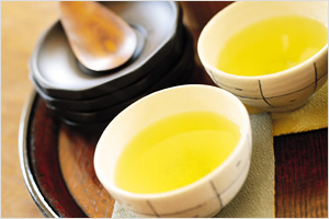 まず、急須(きゅうす)にお茶の葉を入れ、そのお茶に適した湯をそそいだ後、しばらくおくとお茶の中の成分がお湯に溶け出し、ほどよい味と香りが出てきます。